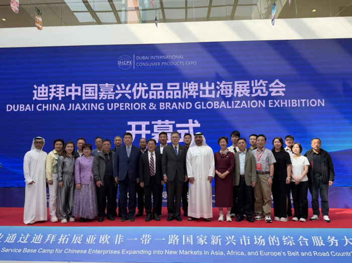 11月25日,迪拜国际消费品博览会暨中国嘉兴优品品牌出海展览会在迪拜义务市场举行,驻迪拜总领事馆经济商务处王晓佳参赞、中国轻工工艺品进出口商会副会长张杰、迪拜商贸城运营公司副总裁穆罕默德、嘉兴消费品企业代表等出席活动。